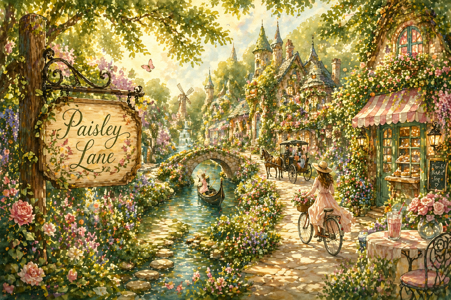There are no cars. Only interesting and relaxing ways to navigate — gondolas, bikes, carriages. The smells are fresh air and bakeries and flower gardens and decadent drinks. A place where kindness reigns, feminine strength is the currency, community replaces competition, and joy is not something you chase but something you simply are.